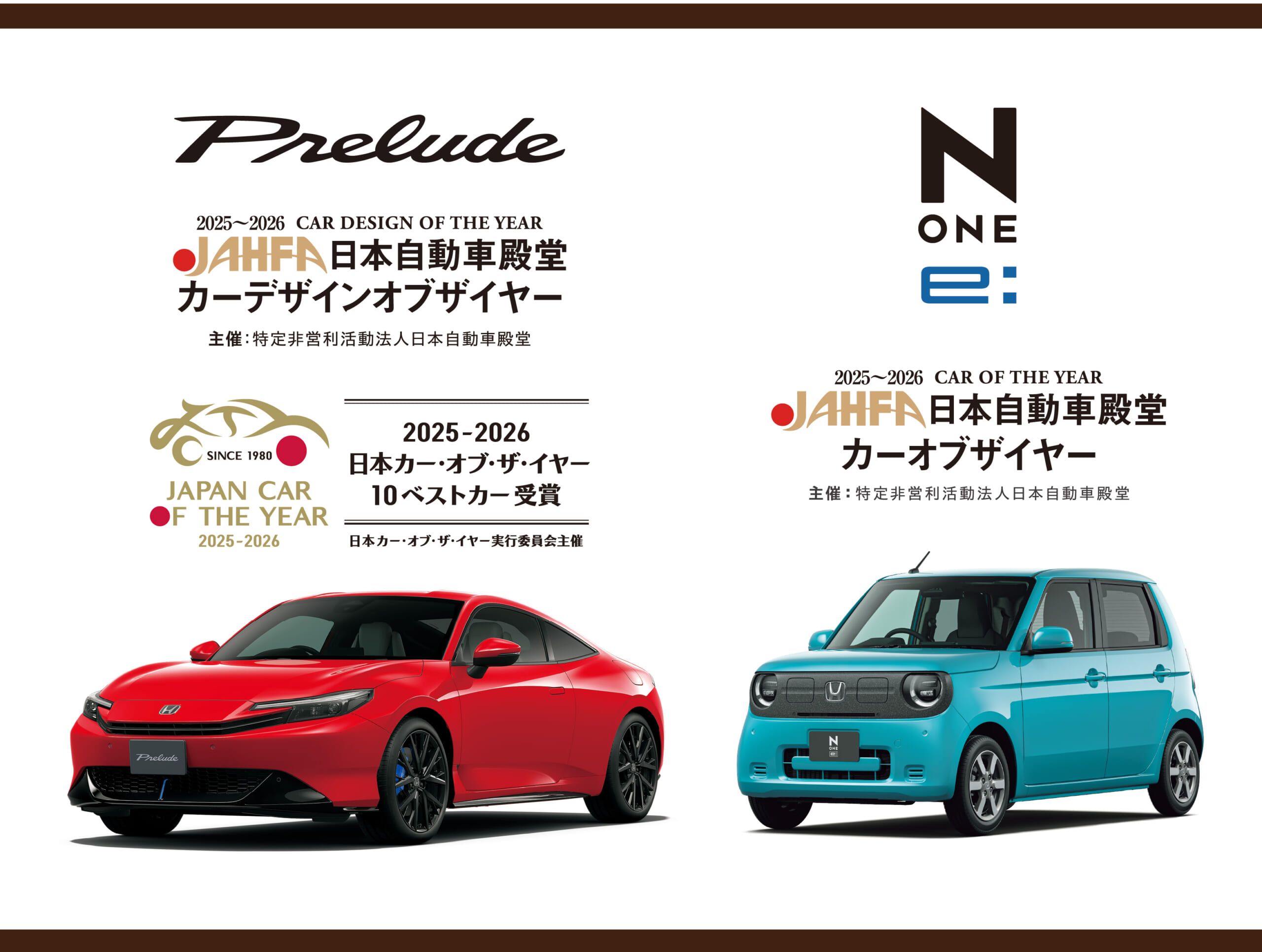 2025〜2026 日本自動車殿堂において「N-ONE e:」がカーオブザイヤー 「PRELUDE」がカーデザインオブザイヤーを受賞