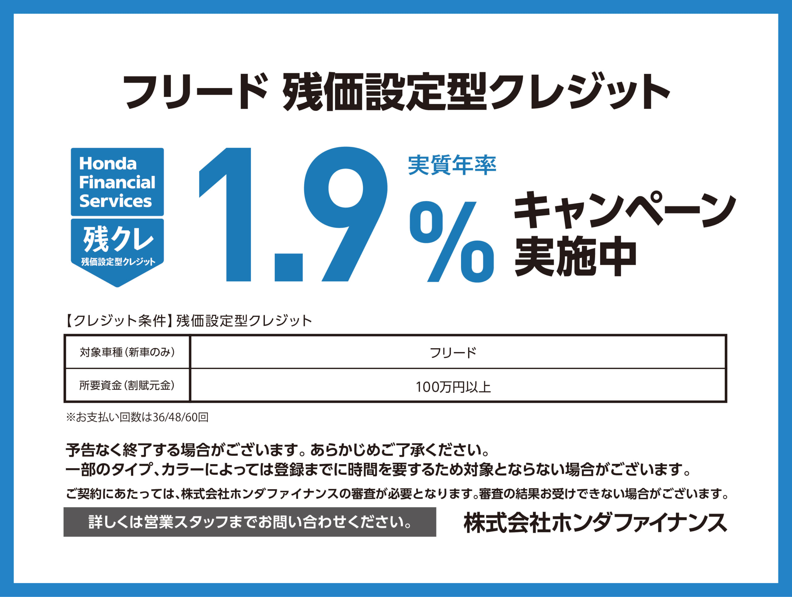 フリード残価設定型クレジット 1.9%(実質年率)キャンペーン実施中!